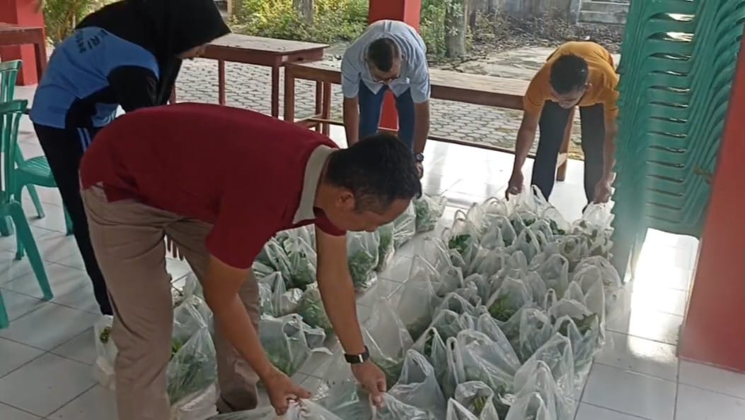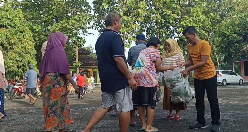Dengan penuh semangat, warga Padas membagikan sayur mayur dan lauk pauk, kepada masyarakat yang umum.