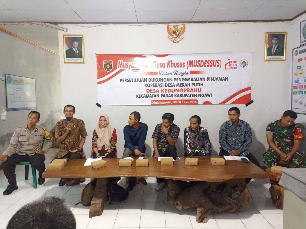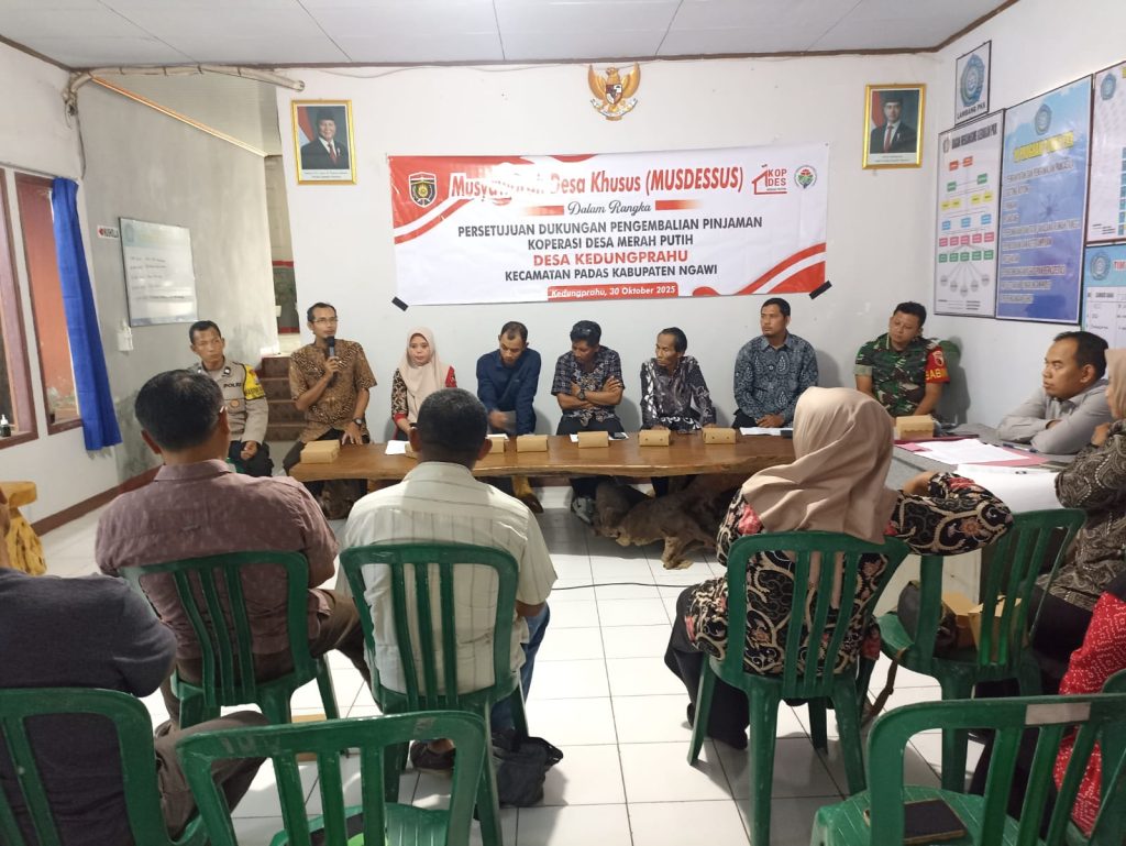 Pemerintah Desa Kedungprahu, Kecamatan Padas, Kabupaten Ngawi, telah menggelar Musyawarah Desa Khusus (Musdesus) pada hari Kamis, 30 Oktober 2025 di Balai Desa Padas.