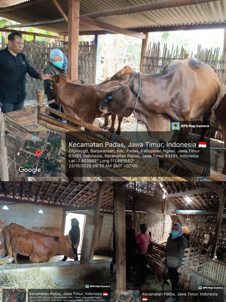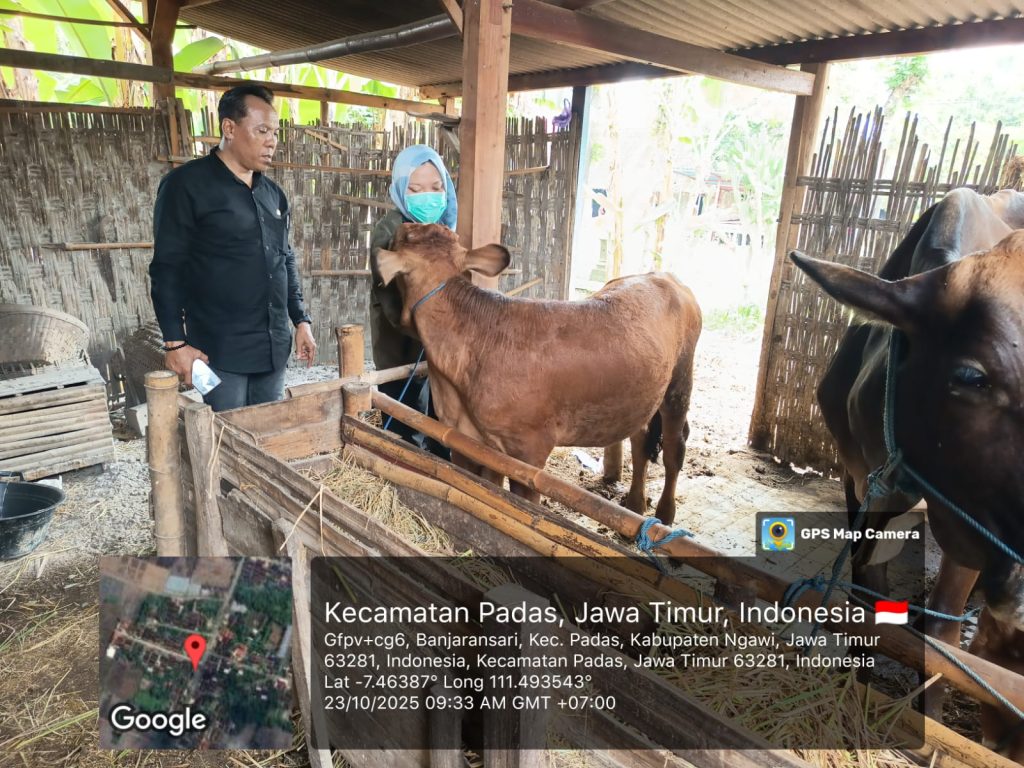 KAMIS, 23 OKTOBER 2025, Kegiatan rutin yang dilaksanakan oleh Dokter Hewan, Dinas Peternakan dan perikanan Kabupaten Ngawi bersama Kasi Trantib Kecamatan Padas, untuk Memonitoring Kegiatan yang dilaksanakan oleh Dinas Peternakan dan Perikanan untuk melaksanakan Vasinisasi terhadap ternak berupa sapi, kambing yang ada di Desa Banjaransari.